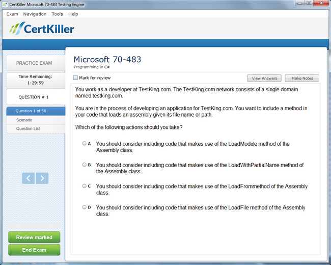 Experience CertKiller Microsoft 70-483 exam Q&A testing engine for yourself.